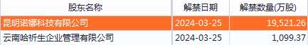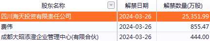 楚天龍約2.4億股限售股份將于2024年3月26日解禁并上市流通,占公司總股本比例約為52.11%。