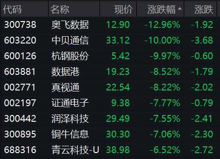 此外,AI概念股全線下挫,高速銅連接器、算力等方向領(lǐng)跌,高新發(fā)展(000628)、中貝通信(603220)、杭鋼股份(600126)、得潤電子(002055)等多股跌停。