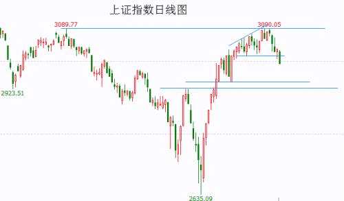 摘要: 周三大盤出現(xiàn)較大幅下跌,創(chuàng)業(yè)板綜指跌超3%,這波反彈已經(jīng)基本宣告結(jié)束了。在探底回升后,滬指再度以中陰跌破擴散形態(tài)下軌,頂部形態(tài)基本宣告成立,接下來將下探2943、2923點。