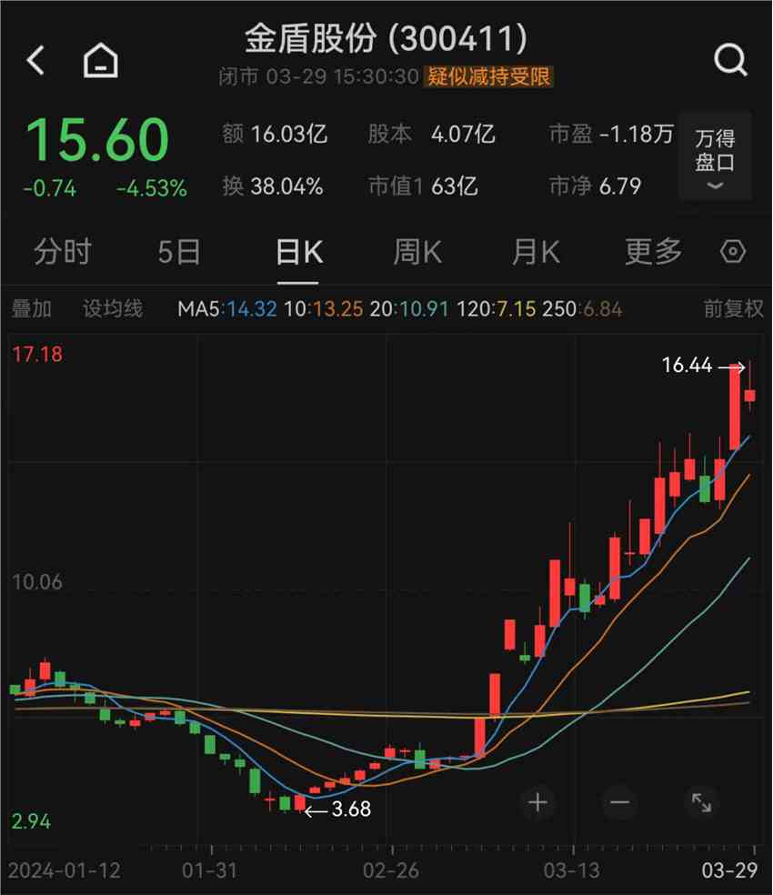 漲幅最大的金盾股份3月累計(jì)上漲200%,總市值從21.14億元增長至63.42億元,期間出現(xiàn)5次20%漲停,其中3月5日至3月7日連續(xù)3個(gè)交易日漲停。金盾股份3月28日晚間發(fā)布股票交易異常波動(dòng)暨風(fēng)險(xiǎn)提示公告表示,公司與清華大學(xué)合作的飛行汽車電動(dòng)涵道風(fēng)扇產(chǎn)品目前還處于研發(fā)階段,尚未應(yīng)用,公司特別提醒投資者,注意投資風(fēng)險(xiǎn),理性決策,審慎投資。此外,金盾股份還發(fā)布了董事、副總經(jīng)理陳根榮計(jì)劃于2024年4月18日至2024年10月18日減持不超813.04萬股,占公司總股本2.0%的減持公告。
