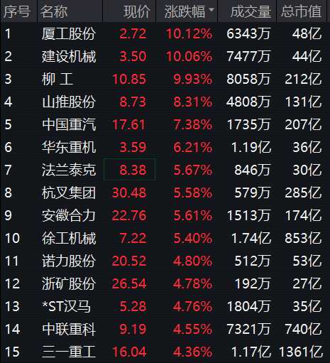 工程機(jī)械板塊漲幅擴(kuò)大