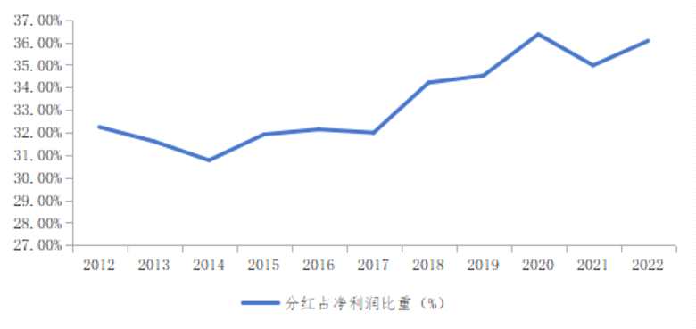 從數(shù)據(jù)上來(lái)看,A股整體分紅率近年一直在持續(xù)提高,并且已經(jīng)常年維持在30%以上,2022年該數(shù)據(jù)已經(jīng)達(dá)到了36.06%。