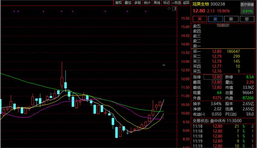 冠昊生物(300238)、開能健康(300272)雙雙開盤20%一字漲停,中源協(xié)和(600645)、南華生物(000504)、赤天化(600227)等多股亦強(qiáng)勢一字封板。