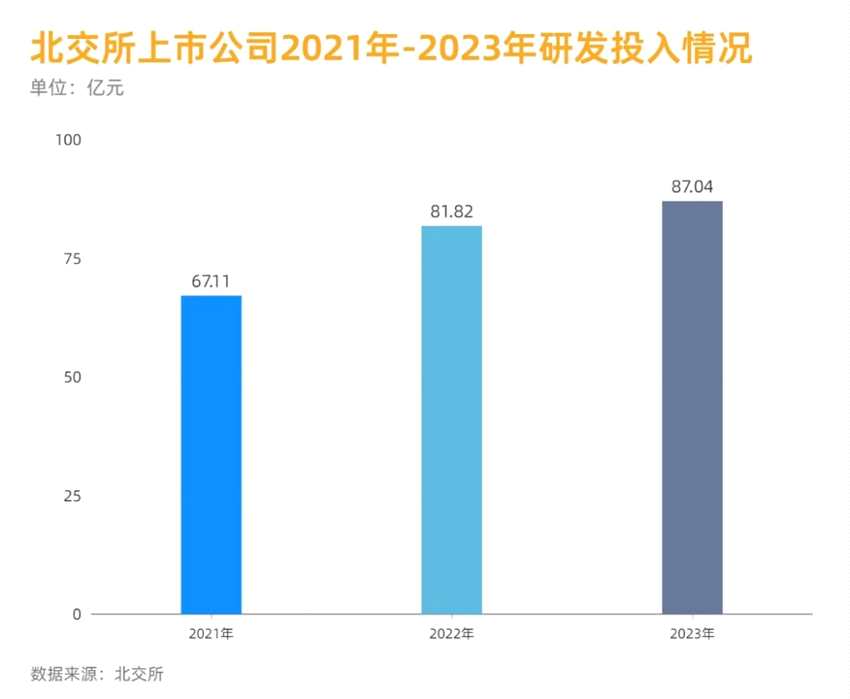 摘要: 記者從北京證券交易所了解到,2023年,北交所上市公司研發(fā)投入持續(xù)提升,全年研發(fā)投入共計(jì)87.04億元,同比增長6.37%,實(shí)現(xiàn)連續(xù)三年增長。制圖:姚均芳2023年,北交所超七成公司研發(fā)投入同比增長,