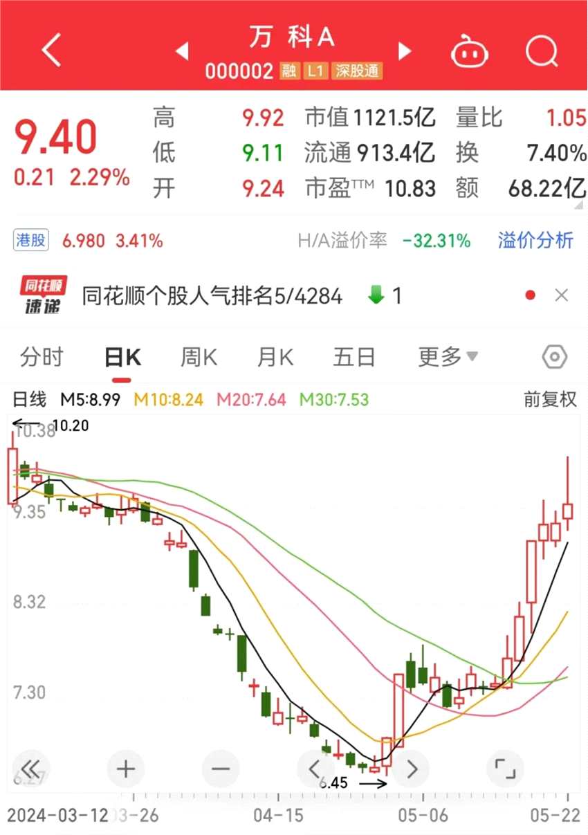 值得一提的是,萬(wàn)科A今日盤(pán)中最高漲近8%,截至收盤(pán)上漲超2%,股價(jià)報(bào)9.4元/股,4月底低點(diǎn)反彈以來(lái)漲幅累計(jì)超45%。