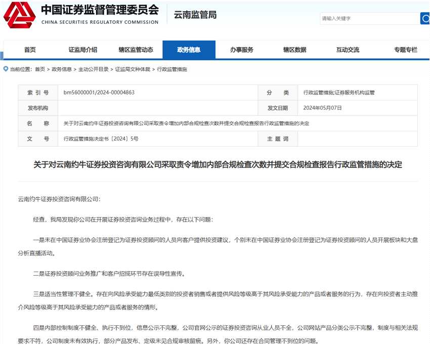 近日,多家第三方投顧機(jī)構(gòu)或個(gè)人陸續(xù)接到罰單,包括深圳市珞珈投資咨詢有限公司法定代表人、董事長(zhǎng)陳杰,合規(guī)負(fù)責(zé)人李玲、黑龍江省容維證券數(shù)據(jù)程序化有限公司深圳分公司、海順證券投資咨詢有限公司、云南約牛證券投資咨詢有限公司。他們的問(wèn)題包括人員管理不規(guī)范,內(nèi)控制度不健全,業(yè)務(wù)推廣環(huán)節(jié)留痕管理不到位,適當(dāng)性管理不健全等。