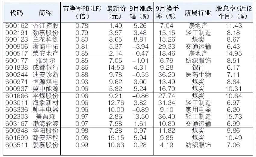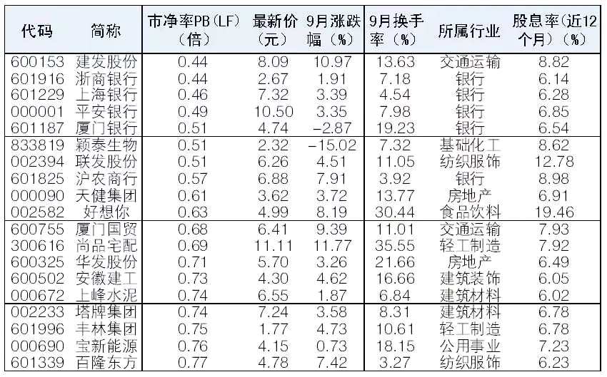 近日,證監(jiān)會(huì)發(fā)布《上市公司監(jiān)管指引第10號(hào)——市值管理(征求意見稿)》。其中要求,長(zhǎng)期破凈公司應(yīng)當(dāng)披露估值提升計(jì)劃,包括目標(biāo)、期限及具體措施。根據(jù)數(shù)據(jù)統(tǒng)計(jì),截至9月25日,37股市凈率低于1倍且近12個(gè)月股息率大于6%。