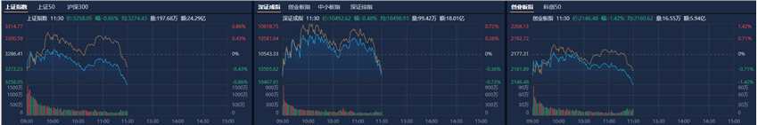 A股午評:創(chuàng)業(yè)板指半日跌1.42%,芯片股集體調(diào)整
