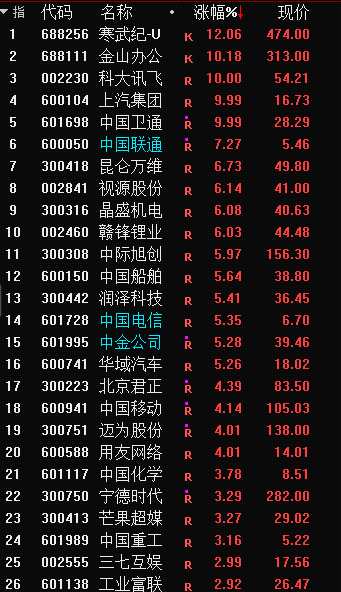 盤(pán)面看,核心資產(chǎn)成分股表現(xiàn)搶眼。從標(biāo)的指數(shù)來(lái)看,上證50、深證50、科創(chuàng)50、中小100、創(chuàng)業(yè)板指漲幅分別是0.59%、0.88%、1.02%、0.39%、1.11%,強(qiáng)于對(duì)應(yīng)的綜合指數(shù)漲幅。個(gè)股方面,上汽集團(tuán)(600104)漲停,寒武紀(jì)、金山辦公漲幅大于10%,科大訊飛(002230)漲停,新易盛(300502)、中際旭創(chuàng)(300308)、晶盛機(jī)電(300316)等多股漲幅超過(guò)了5%。