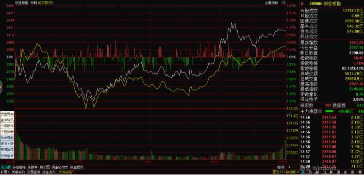 當(dāng)天A股低開(kāi)后連續(xù)上沖20分鐘,但隨著銀行為首的金融類(lèi)藍(lán)籌拉升,創(chuàng)業(yè)板迅速跳水,并拖累整個(gè)A股大幅下挫,有的大盤(pán)跌幅都超過(guò)了2%。不過(guò)10點(diǎn)39分起,多方開(kāi)始發(fā)起反擊,先是利用部分題材股慢慢凝聚人氣,但效果不明顯。下午13點(diǎn)33分后,多頭直接撬動(dòng)各大成分指數(shù)的行業(yè)龍頭股,買(mǎi)盤(pán)蜂擁而至推高股價(jià),進(jìn)而把綜合指數(shù)也從綠盤(pán)拉成了紅盤(pán),使得主要股指分時(shí)圖呈現(xiàn)出V型逆轉(zhuǎn)走勢(shì)。
