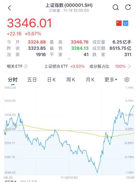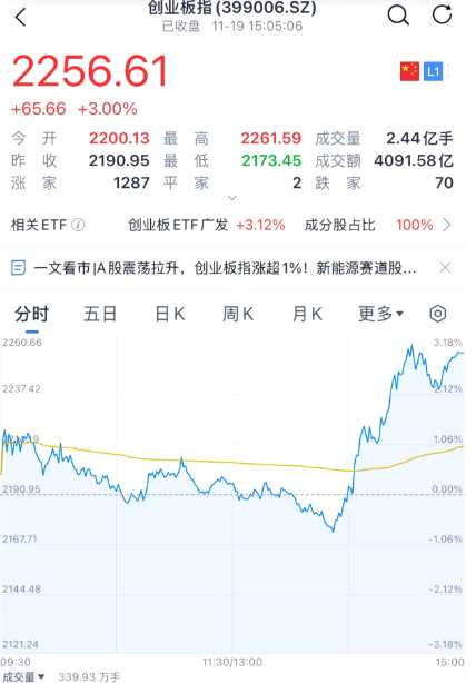 三大指數(shù)早盤高開(kāi)低走,午后開(kāi)盤持續(xù)跳水,上證指數(shù)甚至一度跌破3300點(diǎn),就在大家心灰意冷之際,市場(chǎng)又給了一份大大的驚喜,午后14:00左右,指數(shù)迅猛反彈,直線拉升,3300點(diǎn)失而復(fù)得,創(chuàng)業(yè)板指午后漲超3%,截至收盤滬指漲0.67%,深成指漲1.9%,創(chuàng)業(yè)板指漲3%。