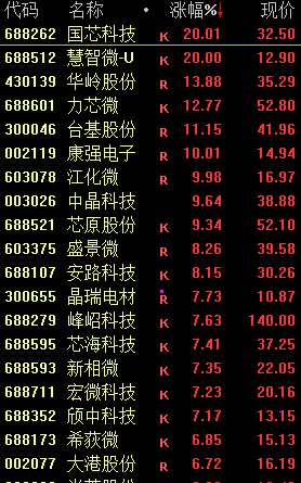 半導(dǎo)體及元件概念反彈,國(guó)芯科技、江化微(603078)、康強(qiáng)電子(002119)、盈方微(000670)、盛劍科技(603324)等多股漲停。