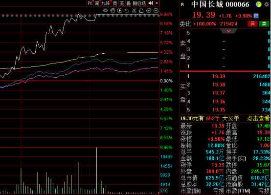 今日市場(chǎng)人氣龍頭中國(guó)長(zhǎng)城早盤震蕩為主,午后該股逐漸震蕩上行,并最終封于漲停。