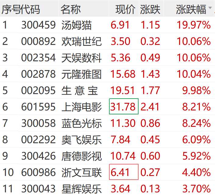 傳媒股盤中拉升,AI應用概念領漲,湯姆貓(300459)20CM漲停,歡瑞世紀(000892)、天娛數(shù)科(002354)、元隆雅圖(002878)等多股漲停。