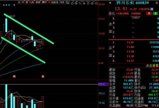 前期妖股四川長虹今日早盤快速上沖,封于漲停。隨后在反復的開板封板中,最終還是收于漲停。