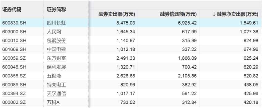 上周融券凈賣出額居前的股票為四川長虹、人民網(wǎng)、包鋼股份(600010),分別為1549.61萬元、1027.36萬元、824.98萬元。