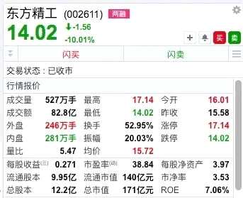 周二14時18分,高位人氣股東方精工(002611)觸及跌停,上演“天地板”行情。此后,股價短暫打開跌停,但最終以跌停價收盤,成交額超80億元。該股此前走出8連板,早盤一度觸及漲停。