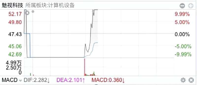 上午11時(shí)左右,魅視科技直線拉升,上演“地天板”,成交金額超6億元。該股此前6連板,今日早盤以跌停開(kāi)盤。