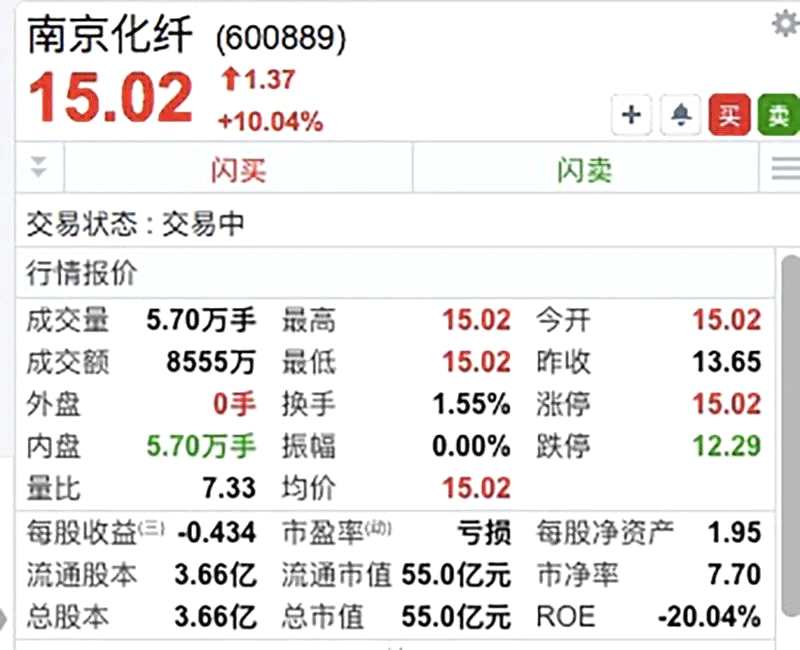 南京化纖走出8連板