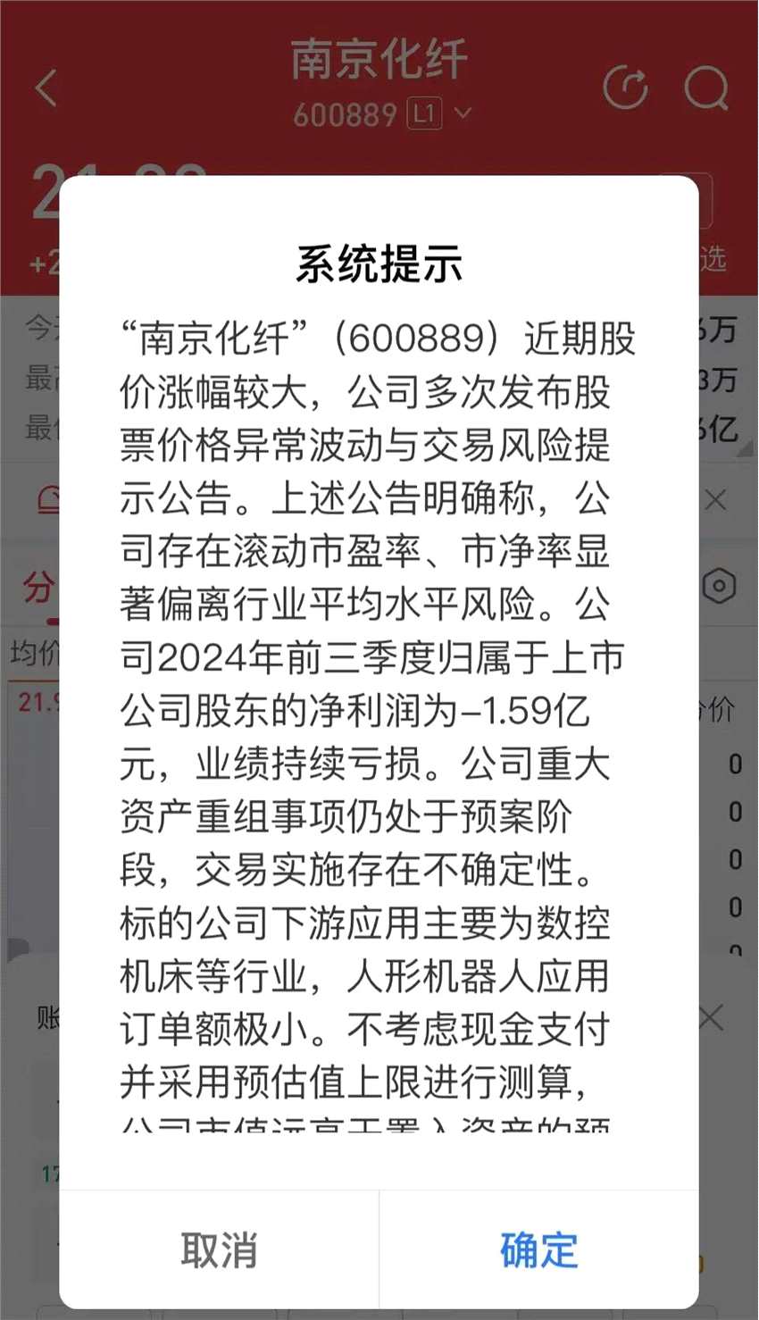 此外,2023年度,南京化纖歸屬于上市公司股東的凈利潤(rùn)為-1.85億元;2024年前三季度,公司歸屬于上市公司股東的凈利潤(rùn)為-1.59億元,業(yè)績(jī)持續(xù)虧損。公司本次重大資產(chǎn)重組事項(xiàng)仍處于預(yù)案階段,尚需履行必要的內(nèi)部決策程序,并需經(jīng)有權(quán)監(jiān)管機(jī)構(gòu)批準(zhǔn)后方可正式實(shí)施。