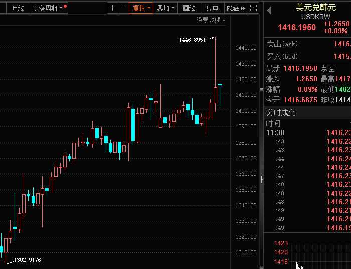 受此消息影響,韓國資產(chǎn)劇烈波動,韓元兌美元匯率一度大跌近3%,為2022年10月以來新低。