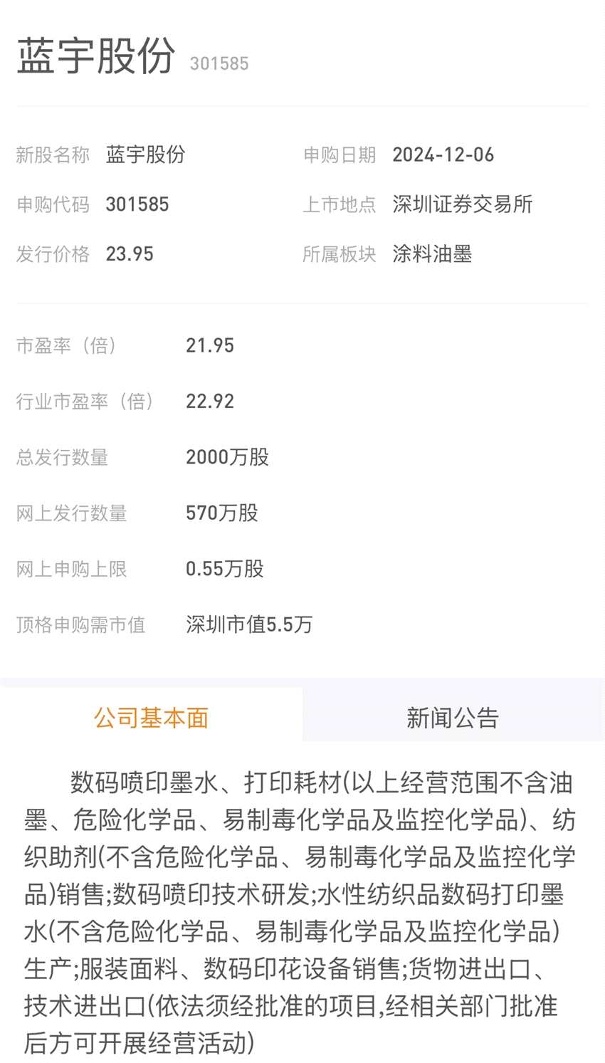 今天有一只新股申購。