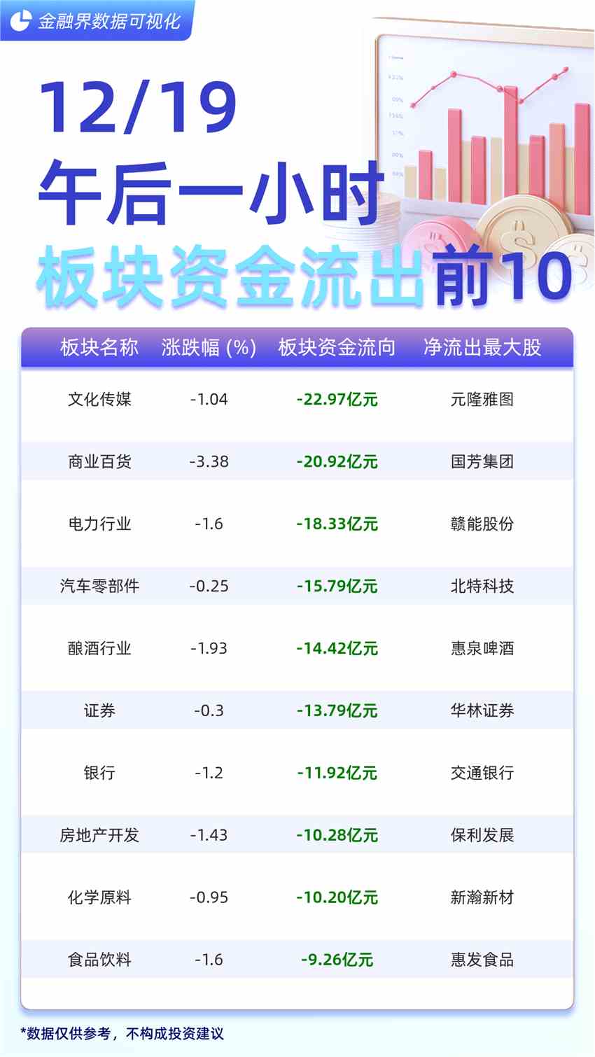 【主力板塊資金榜前10】文化傳媒流出22.97億元、商業(yè)百貨流出20.92億元