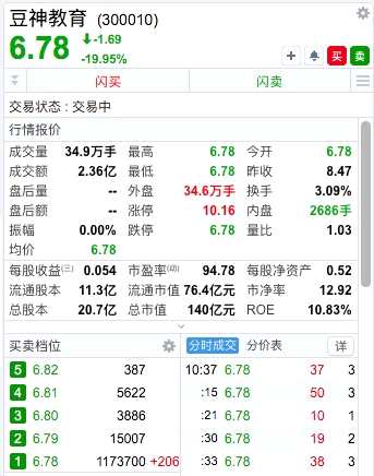 豆神教育20cm跌停