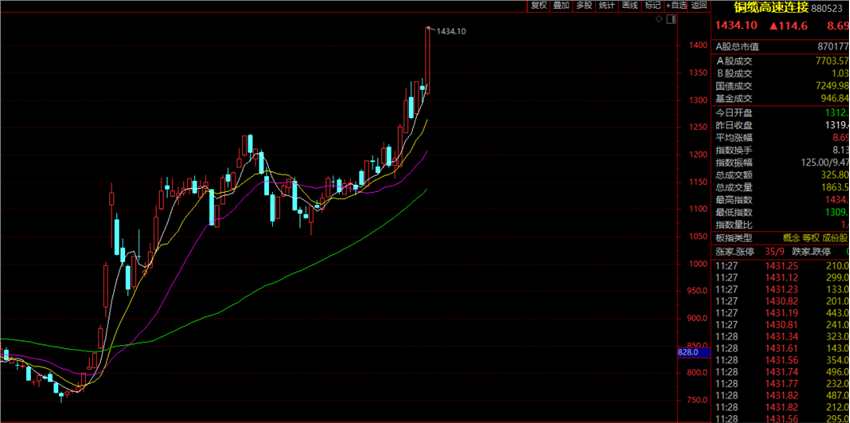 其中,銅纜高速連接概念大漲,板塊指數(shù)罕見暴漲超8%,個(gè)股更是出現(xiàn)漲停潮,多股20%漲停。
