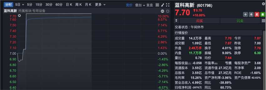 核電核能、特高壓、智能電網(wǎng)、光熱發(fā)電等板塊紛紛高開高走,單邊上揚(yáng)。藍(lán)科高新、順鈉股份(000533)、至正股份(603991)、康強(qiáng)電子(002119)等批量漲停。