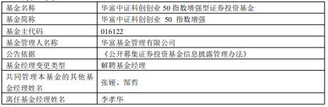李孝華離任華富中證科創(chuàng)創(chuàng)業(yè)50指數(shù)增強