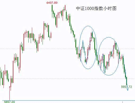 中證1000指數(shù)破位大跌,3浪結(jié)構(gòu)反彈后如期重演歷史下跌。兩個3浪結(jié)構(gòu)也可以看作是一個順勢平臺,接下來至少要跌至11月27日低點附近后才會有震蕩或反彈。最終該位置是難以撐住的,后市破位形成雙頭只是時間問題。
