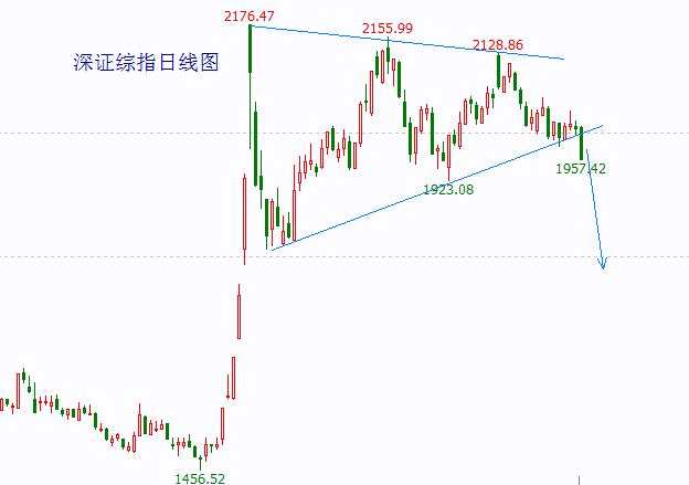 這波行情于9月啟動,暴力拉升至10月8日后主要股指持續(xù)震蕩,創(chuàng)業(yè)板指以及代表深市所有股票走勢的深綜指很有代表性,指數(shù)形成三角形,現(xiàn)已經(jīng)跌破了下軌,這預(yù)示為期3個月的震蕩很可能就此結(jié)束了,后面將被“打回原形”。(公號“中產(chǎn)投資”)