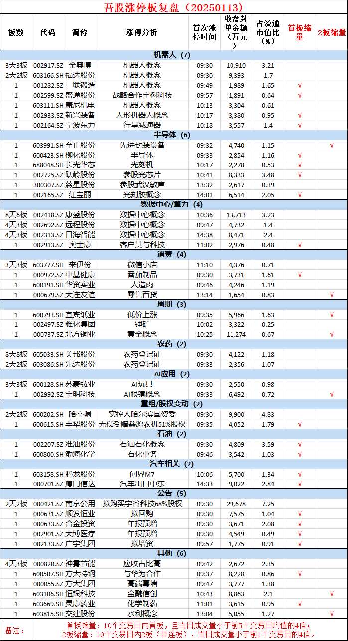 【風(fēng)云題材】全天題材熱點(diǎn)及漲停復(fù)盤匯總20250113