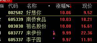 食品、零售等消費(fèi)股盤中拉升,好想你(002582)、來伊份(603777)、李子園(605337)、廣百股份(002187)等封板。