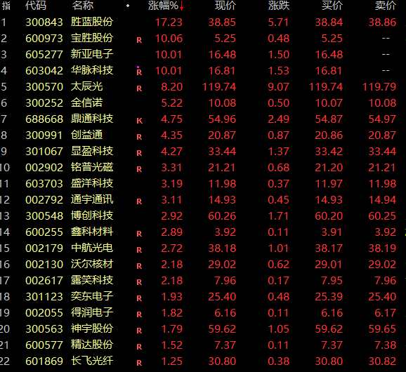 銅纜高速連接板塊直線拉升,新亞電子(605277)、華脈科技(603042)漲停,勝藍(lán)股份(300843)漲超10%,瑞可達(dá)、鑫科材料(600255)、金信諾(300252)、兆龍互連(300913)、神宇股份(300563)等跟漲。