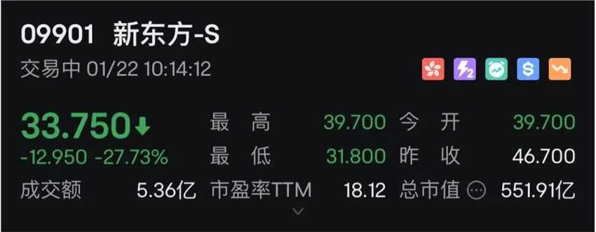 港股新東方績(jī)后低開,跌幅一度擴(kuò)大至30%,截至發(fā)稿仍跌27.73%,東方甄選盤初跌逾6%。