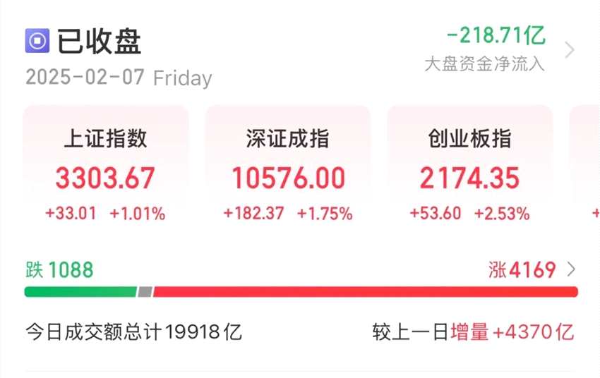 周五,A股市場全天沖高回落,滬指最終收盤站上3300點關口,北證50指數(shù)大漲近5%。截至收盤,上證指數(shù)報3303.67點,漲1.01%;深證成指報10576.00點,漲1.75%;創(chuàng)業(yè)板指報2174.35點,漲2.53%。