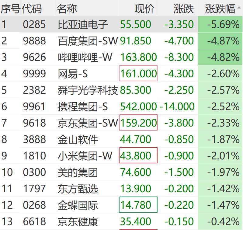 港股早間開(kāi)盤(pán)飄紅,恒生科技指數(shù)高開(kāi)逾1%。截至發(fā)稿,港股三大指數(shù)集體飄綠;比亞迪(002594)電子、嗶哩嗶哩領(lǐng)跌恒生科技指數(shù)成份股。