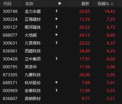金力永磁漲超14%