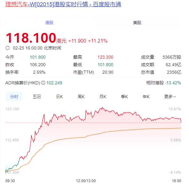 新能源汽車概念港股逆市走強(qiáng)。截至收盤,理想汽車-W(02015.HK)漲超11%,成交額達(dá)62.49億港元;小米集團(tuán)和小鵬汽車跟漲。消息面上,理想汽車今日發(fā)布首款純電SUV“理想i8”。