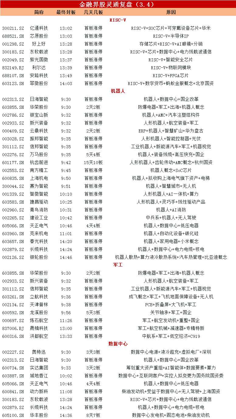 半導(dǎo)體芯片(RISC-V)股崛起,芯原股份、東軟載波(300183)、安路科技等漲停。軍工股走強(qiáng),北方長龍(301357)、建設(shè)工業(yè)(002265)、新興裝備(002933)等個(gè)股漲停。機(jī)器人概念股持續(xù)活躍,杭齒前進(jìn)(601177)、萬馬股份(002276)、智微智能(001339)、等個(gè)股漲停。