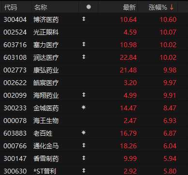 申萬醫(yī)藥板塊早盤漲幅排名