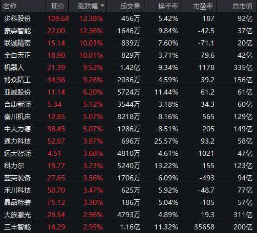 機(jī)器人概念股盤中走強(qiáng),步科股份、豪森智能漲幅居前,聯(lián)誠精密(002921)、金自天正(600560)漲停。