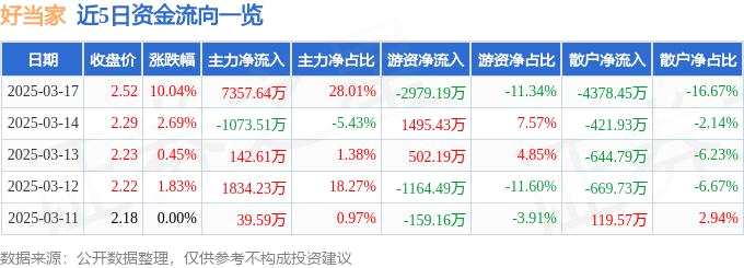 消息,好當(dāng)家(600467)3月17日漲停收盤(pán),收盤(pán)價(jià)2.52元。該股于9點(diǎn)43分漲停,未打開(kāi)漲停,截止收盤(pán)封單資金為4888.28萬(wàn)元,占其流通市值1.33%。