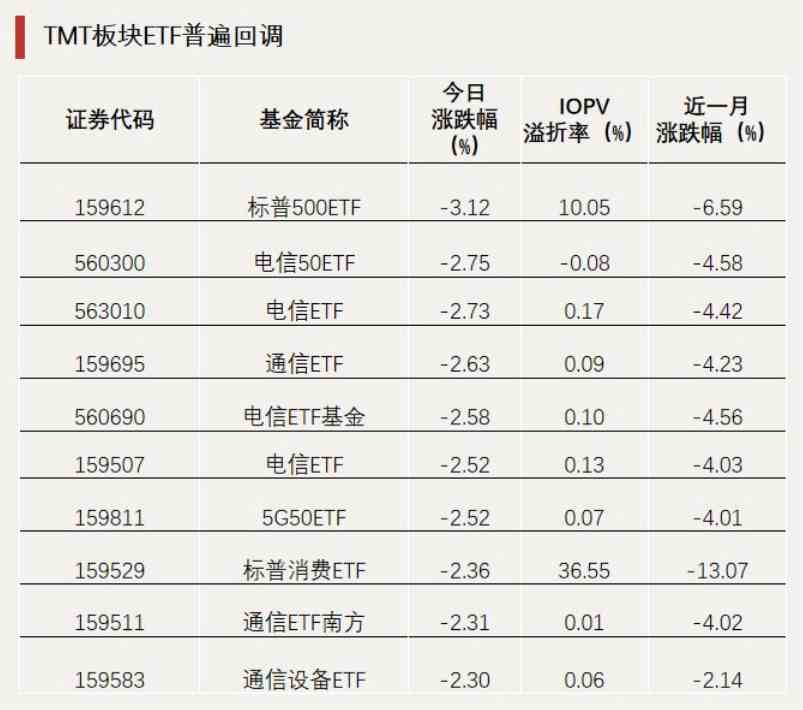 今日,此前熱門(mén)的科技板塊ETF出現(xiàn)較明顯的回調(diào),全市場(chǎng)ETF跌幅榜前10中,有8只產(chǎn)品為科技板塊ETF,多為電信、通信、云計(jì)算、5G等板塊產(chǎn)品,多只ETF跌幅超過(guò)2%。