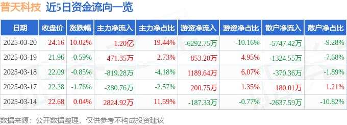 消息,普天科技(002544)3月20日漲停收盤,收盤價24.16元。該股于9點40分漲停,2次打開漲停,截止收盤封單資金為7908.8萬元,占其流通市值0.48%。