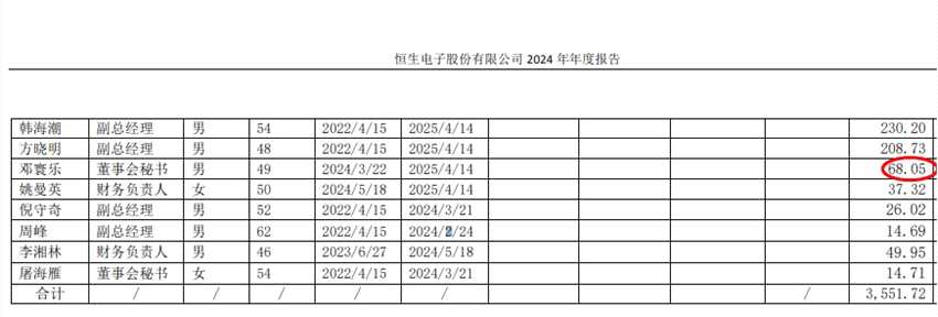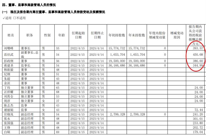高管薪酬方面,董事長(zhǎng)劉曙峰2024年薪酬為393.57萬(wàn)元,2023年薪酬為391.07萬(wàn)元,漲薪2.5萬(wàn)元??偨?jīng)理范徑武薪酬為450.68萬(wàn)元,2023年薪酬為482.74萬(wàn)元,降薪32.06萬(wàn)元。董秘鄧寰樂(lè)薪酬為68.05萬(wàn)元,任職起始日2024年3月22日。