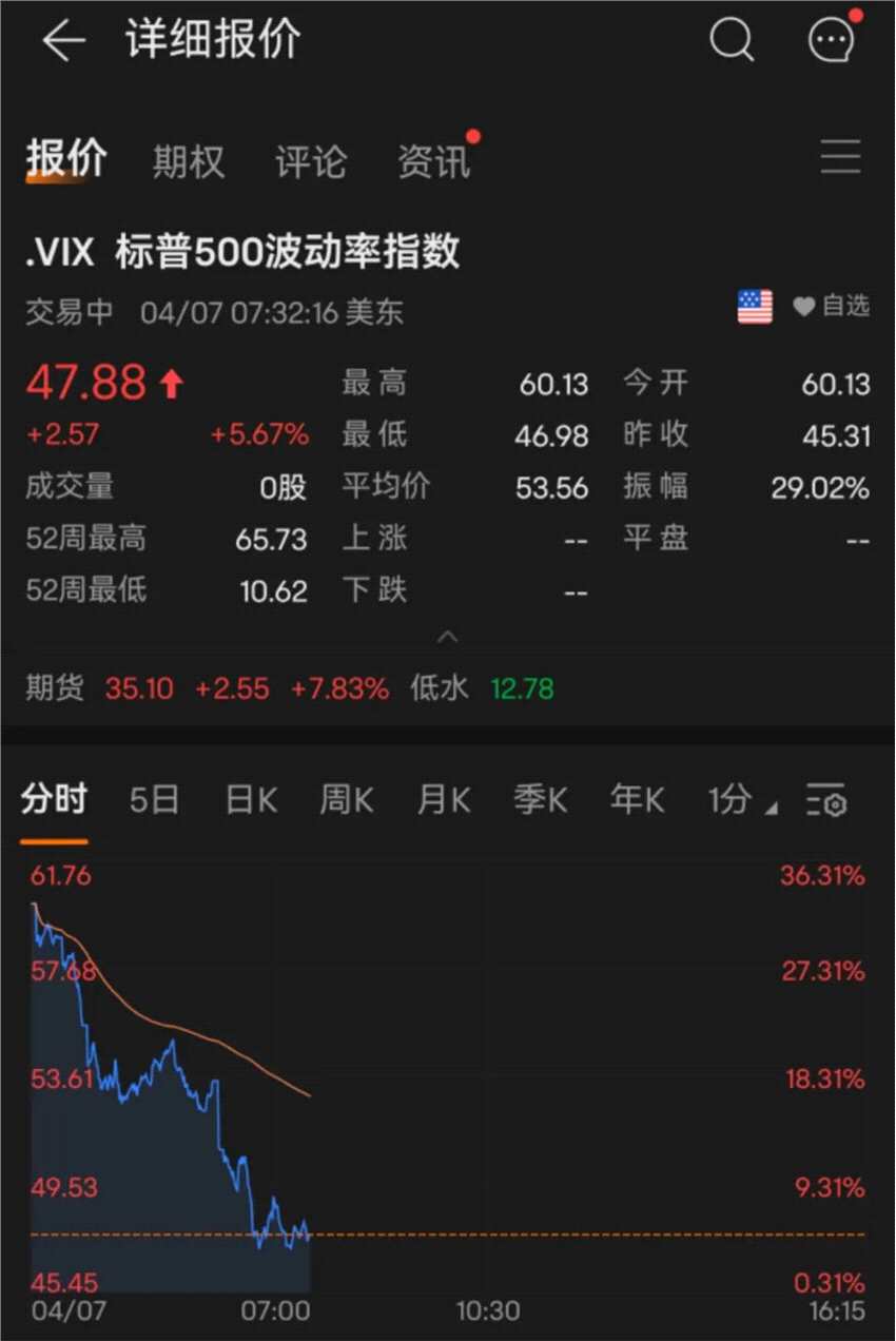 據(jù)富途數(shù)據(jù),截至北京時間19:30,納斯達克100期貨主力合約跌逾2%,標普500期貨、道瓊斯期貨主力合約跌幅均不足2%。衡量美股波動率的指數(shù)VIX(恐慌指數(shù))漲幅由盤初的32%跌至5.67%。