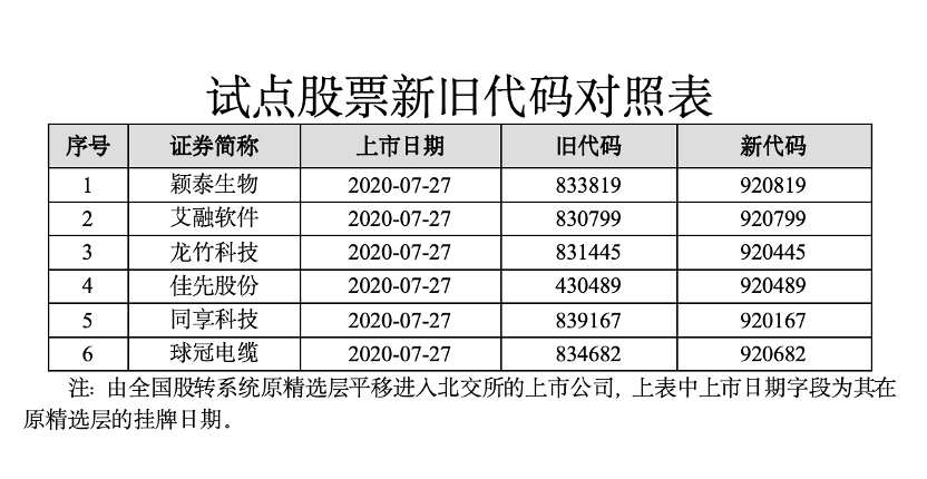 北交所6只試點(diǎn)股票正式啟用920新代碼